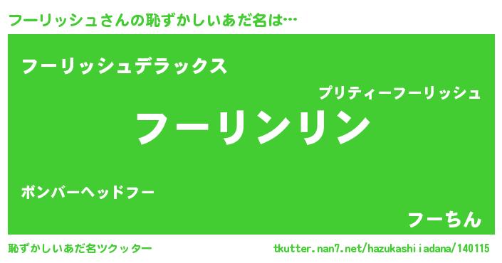| ヒーロー風カッコイイあだ名 | 『魔戒騎士フー』『ネオフーリッシュ』 |