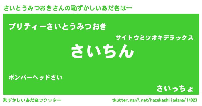 | 意味不明あだ名 | 『永久保存さいとうみつおき』 |