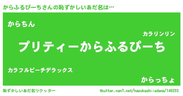 | 胡散臭い通販商品みたいなあだ名 | 『モテモテ間違いなし霊験あらたかなお札…その名も「からふるぴーち」』 |