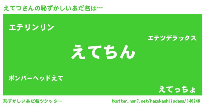 | ヘコむあだ名 | 『えてつ(爆)』『えてを』『酢こんぶ』 |