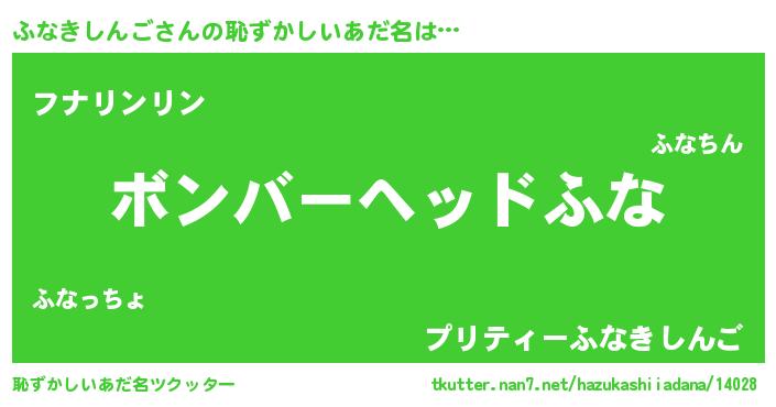| 男性向けラノベタイトル風あだ名 | 『ノーゲーム・ノーフナキシンゴ』 |
