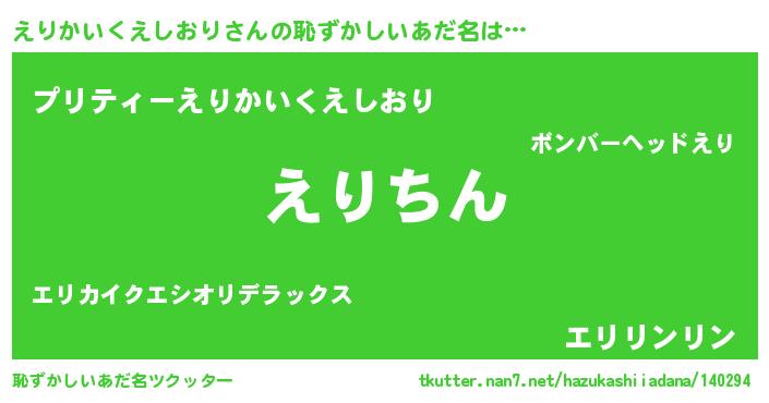 | 胡散臭い通販商品みたいなあだ名 | 『来世でも幸せになれる健康食品…その名も「えりかいくえしおり」』 |