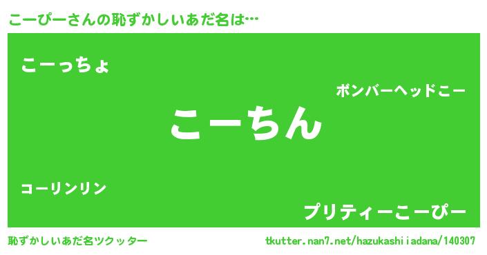 | ヘコむあだ名 | 『こーぴー(笑)』『豆乳』 |