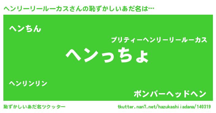 | 欧米人風あだ名 | 『ヘンリーリールーカスクリステル』 |