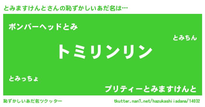 | 男性向けラノベタイトル風あだ名 | 『トミマスケントスレイヤー』 |