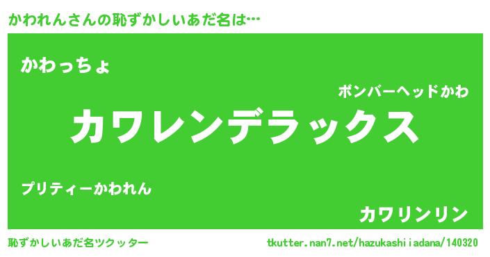 | ヒーロー風カッコイイあだ名 | 『仮面カワダー』『超時空戦士カワレン』 |