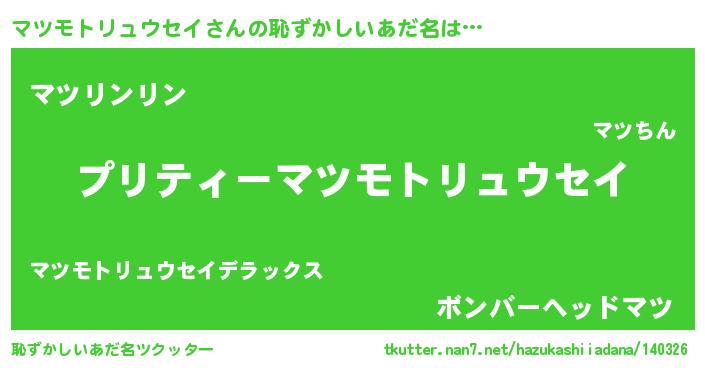 | ヒーロー風カッコイイあだ名 | 『スーパーマツモトリュウセイ』 |