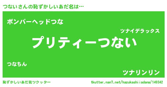 | 男性向けラノベタイトル風あだ名 | 『ツナイスレイヤー』『つないの憂鬱』 |