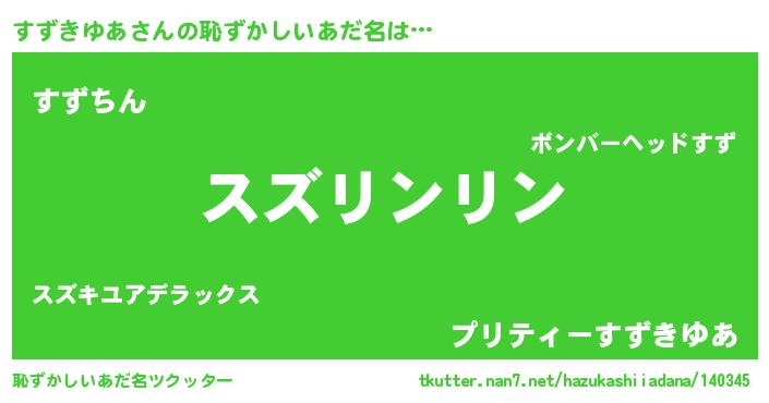| ヘコむあだ名 | 『すずお』『すずきゆあ(震え声)』 |