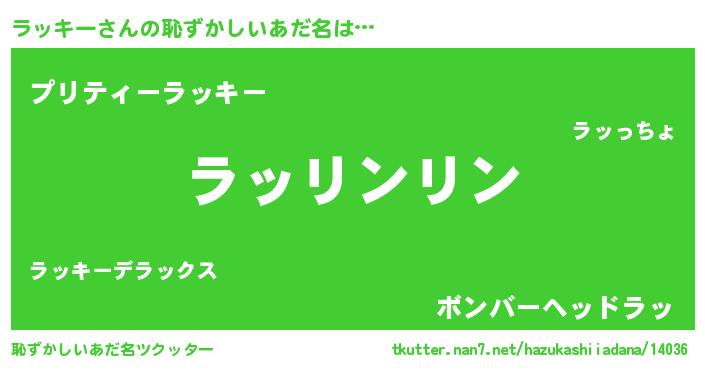 | 欧米人風あだ名 | 『トリンドルラッキー』 |
