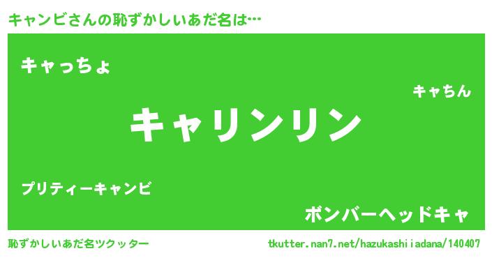 | 男性向けラノベタイトル風あだ名 | 『キャンビの嫁は女の子じゃないと思った?』 |