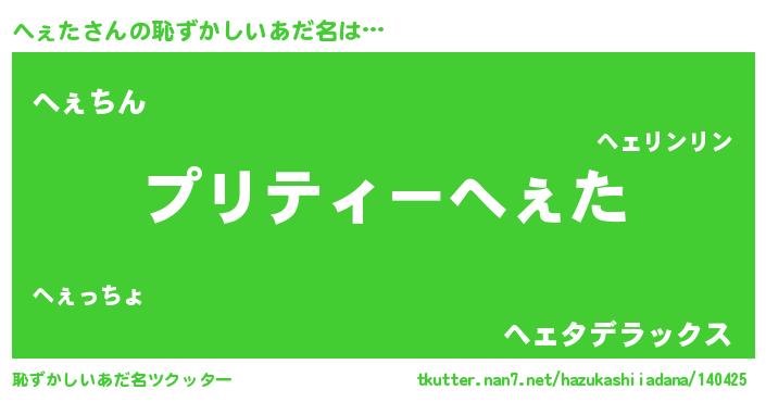 | 意味不明あだ名 | 『住所不定無職へぇた(65歳)』『自称へぇた』 |