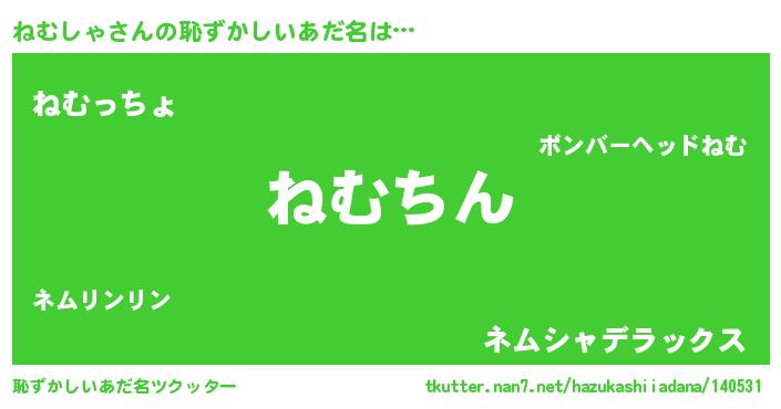 | 意味不明あだ名 | 『永久保存ねむしゃ』『自称ねむしゃ』 |