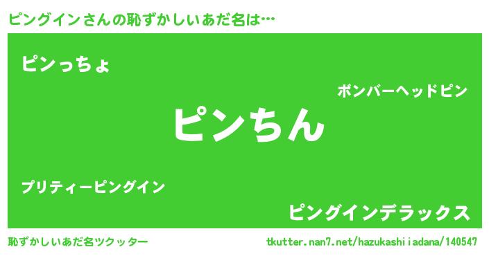 | 男性向けラノベタイトル風あだ名 | 『ピングインスレイヤー』 |