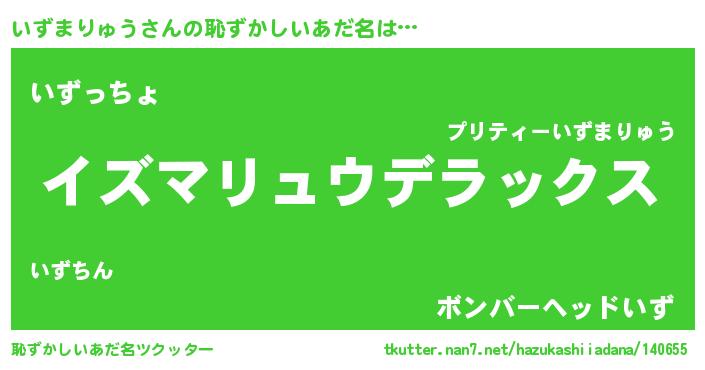 | 男性向けラノベタイトル風あだ名 | 『魔法科高校のいずまりゅう』 |