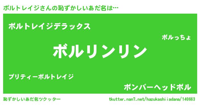 | 女子向けラノベタイトル風あだ名 | 『ボルトレイジ様がみてる』 |