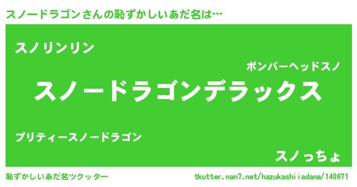 | 男性向けラノベタイトル風あだ名 | 『魔法科高校のスノードラゴン』 |