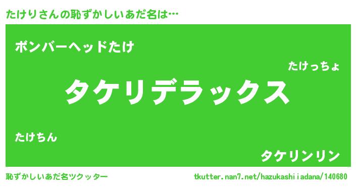 | 意味不明あだ名 | 『自称たけり』『住所不定無職たけり(40歳)』 |