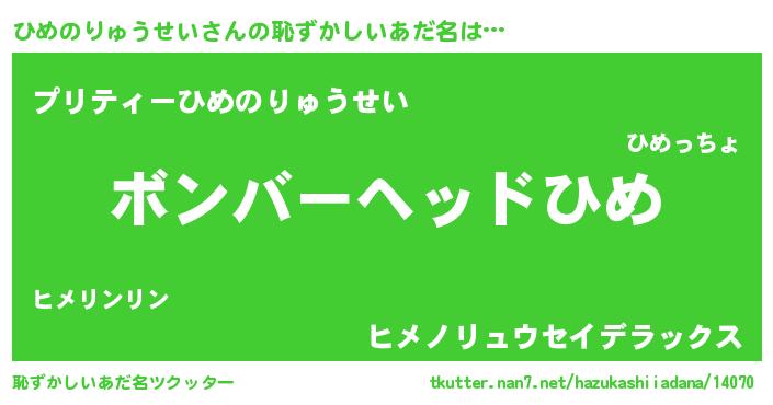 | 意味不明あだ名 | 『住所不定無職ひめのりゅうせい(95歳)』 |