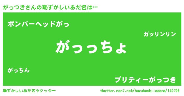| 男性向けラノベタイトル風あだ名 | 『ガッツキスレイヤー』『がっつきの憂鬱』 |