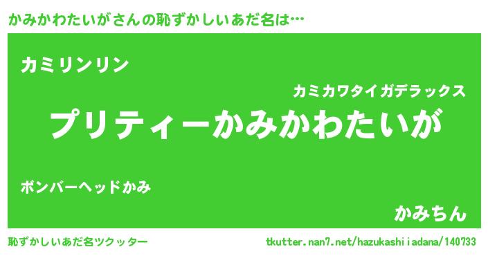 | ヒーロー風カッコイイあだ名 | 『スーパーカミカワタイガ』 |
