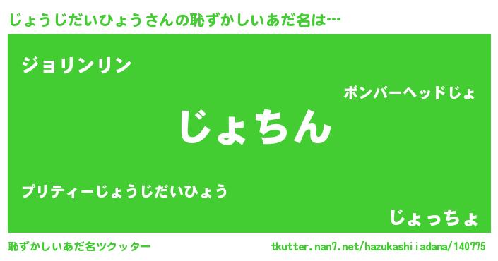 | 意味不明あだ名 | 『住所不定無職じょうじだいひょう(9歳)』 |