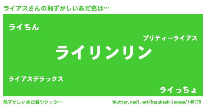 | 意味不明あだ名 | 『とにかく怪しいライアス』 |