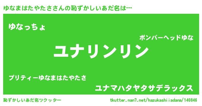 | 男性向けラノベタイトル風あだ名 | 『ゆなまはたやたさの嫁は女の子じゃないと思った?』 |