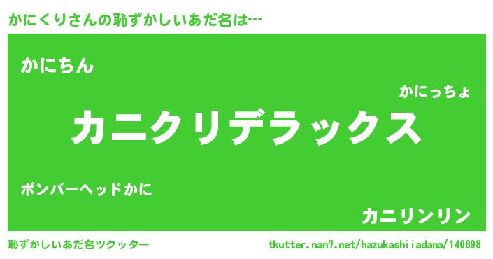 | 意味不明あだ名 | 『自称かにくり』『永久保存かにくり』 |