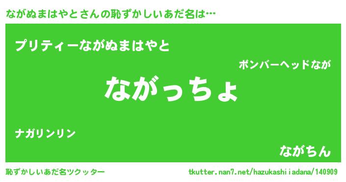 | 男性向けラノベタイトル風あだ名 | 『やはりながぬまはやとの青春ラブコメはまちがっている 』 |