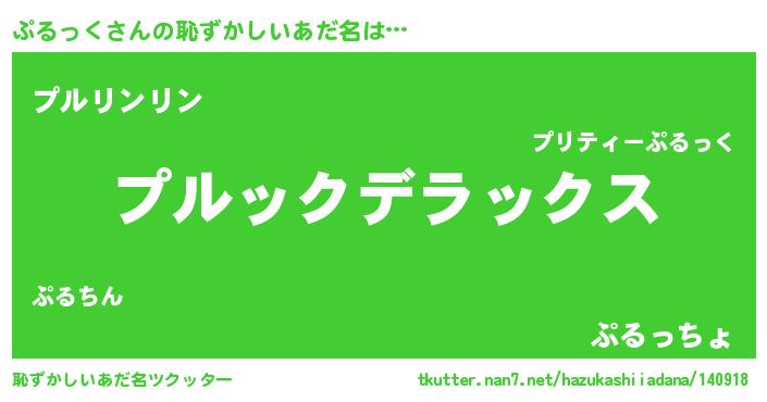 | 意味不明あだ名 | 『もやし科ぷるっく属』『自称ぷるっく』 |