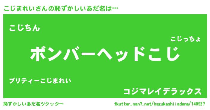| 男性向けラノベタイトル風あだ名 | 『おまえをオタクにしてやるから、俺をこじまれいにしてくれ! 』 |