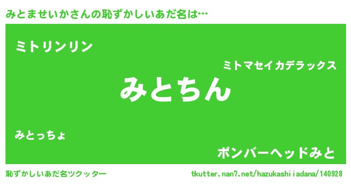 | ヒーロー風カッコイイあだ名 | 『ネオミトマセイカ』『仮面ミトダー』 |