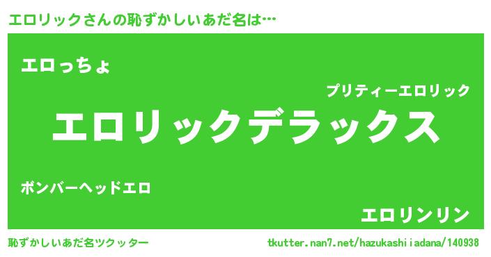 | 男性向けラノベタイトル風あだ名 | 『Re:エロリックから始める異世界生活』 |