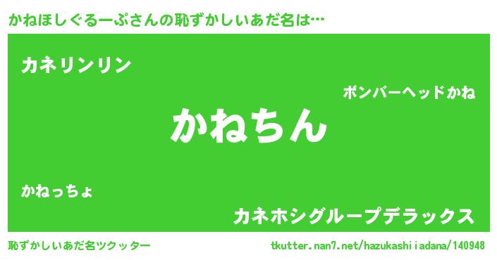 | 意味不明あだ名 | 『永久保存かねほしぐるーぷ』 |