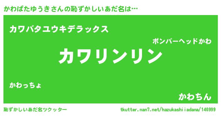| ポケモン風あだ名 | 『ヒカワバタユウキ』『カワセウス』 |