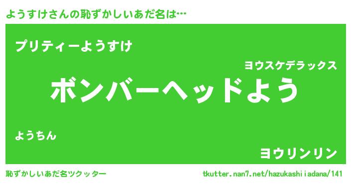 | 欧米人風あだ名 | 『ようすけ・ステッグマイヤー』 |