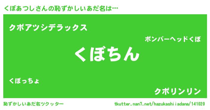 | 意味不明あだ名 | 『住所不定無職くぼあつし(91歳)』 |