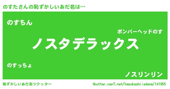 | 男性向けラノベタイトル風あだ名 | 『Re:のすたから始める異世界生活』 |