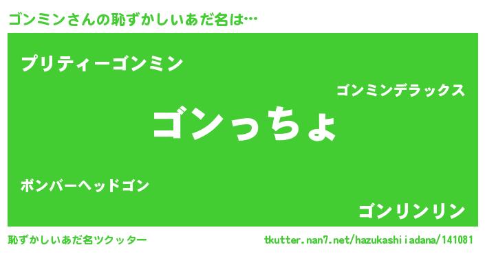 | ヘコむあだ名 | 『つくし』『ゴンにー』『ゴンぷりん』 |