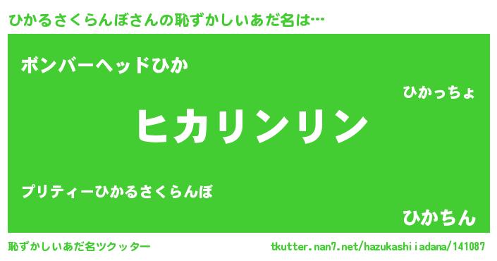 | ヘコむあだ名 | 『ひかっぺ』『ひかるさくらんぼ(遠い目)』 |