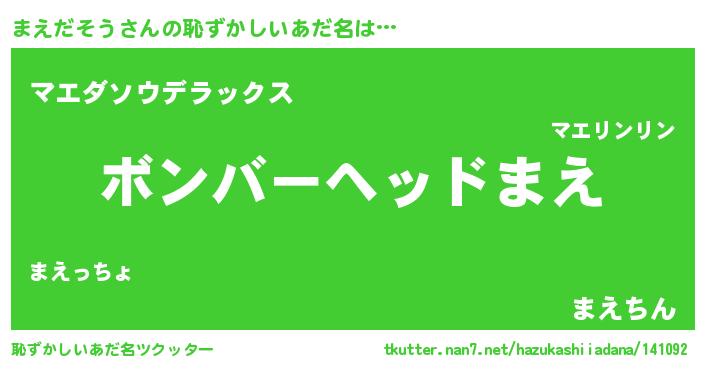 | ヘコむあだ名 | 『まえだそう(笑)』『まえ太郎』 |