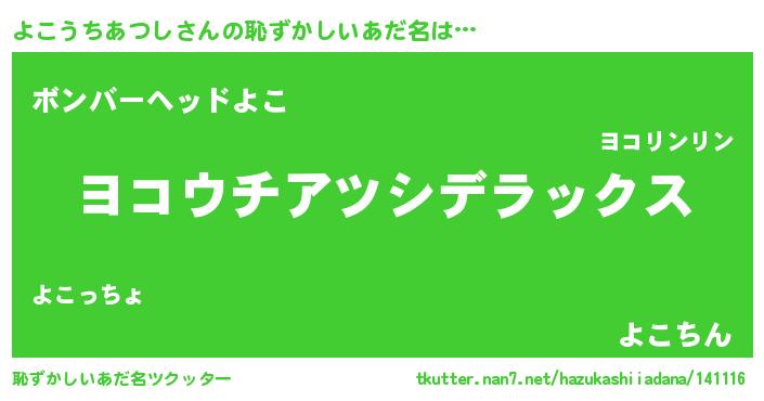 | ヘコむあだ名 | 『よこうちあつし(小並感)』『よこ太郎』 |