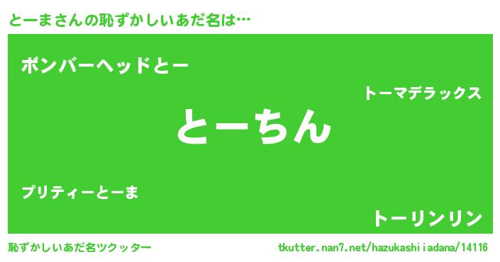 | ヒーロー風カッコイイあだ名 | 『ネオトーマ』『慈愛の使者とーま』 |