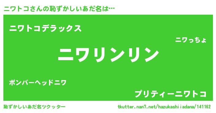 | ヘコむあだ名 | 『ニワっ子』『ニワにー』『なまこ酢』 |