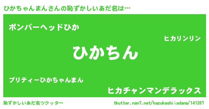| ピコ太郎風あだ名 | 『ピコヒ郎』『ヒヒ太郎』『ヒカ太郎』 |