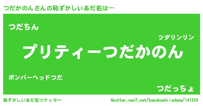 | ヘコむあだ名 | 『つだにー』『つだかのん(笑)』 |