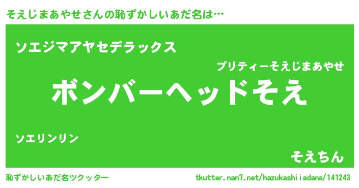 | 意味不明あだ名 | 『住所不定無職そえじまあやせ(53歳)』 |