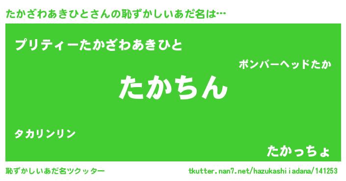 | ヘコむあだ名 | 『たかざわあきひと(笑)』『たかにゅー』 |
