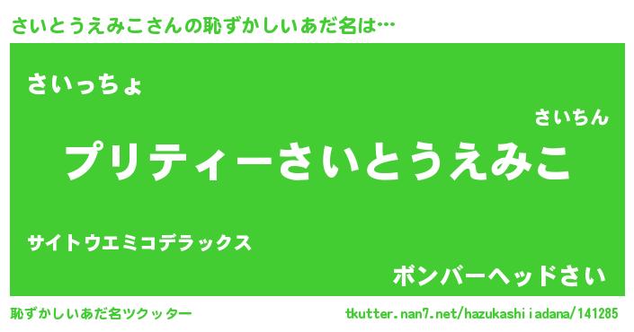 | 欧米人風あだ名 | 『マイケルさいとうえみこ』 |